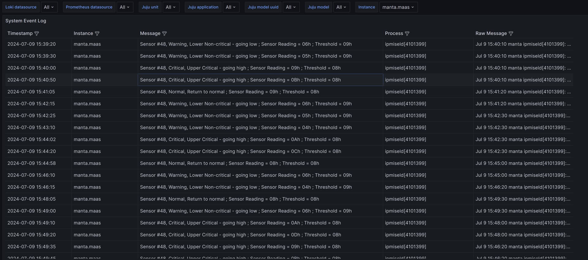 The BMC Dashboard offers a comprehensive list of all System Event Log (SEL) records and ipmiseld status logs.